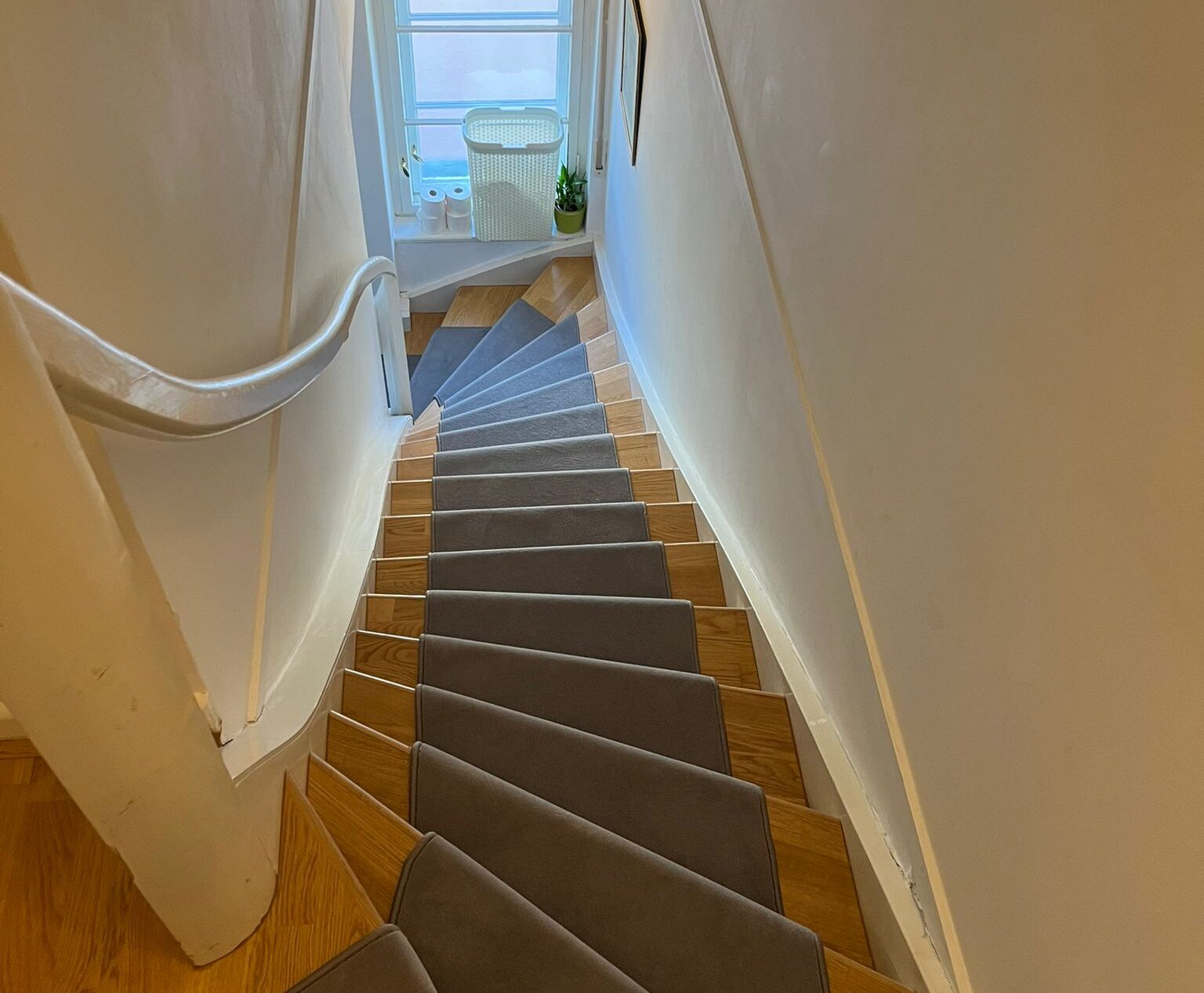 Die IT-Firma Netlight hat sich Büros in der Invalidenstraße in Berlin Mitte gemietet und wollte sein eigenes Design in den Räumen. Neben knalligen Farben an der Wand wurde auch das Parkett überarbeitet und im Bürobereich, der Akustik wegen, auch neue Teppichfliesen verlegt. Die Wahl viel auf die oft genutzt Interface Composure Kollektion im knalligen Auberginen-Lila. Die gleichen Fliesen wurden auch auf der Treppe genutzt, die die beiden Stockwerke miteinander verbindet.