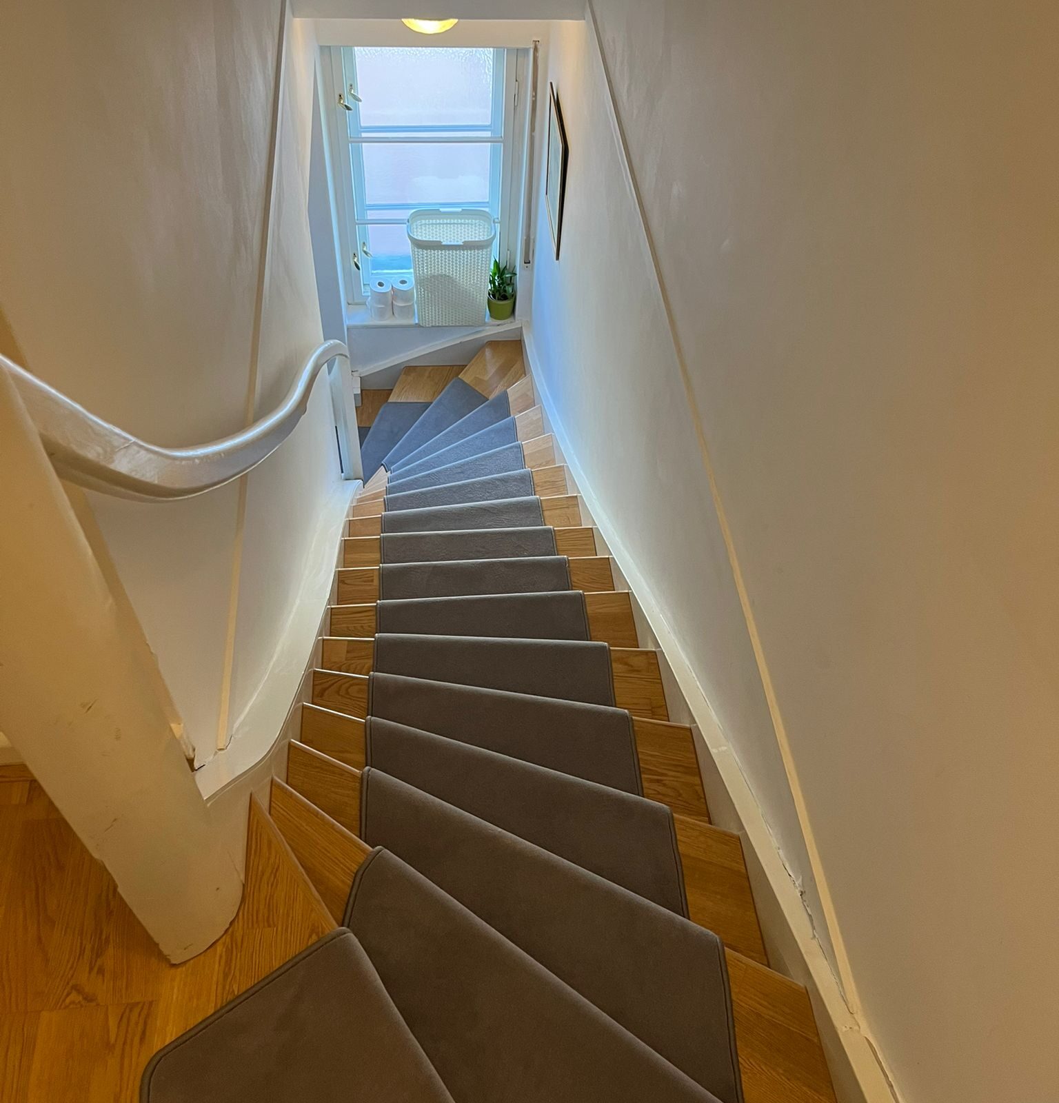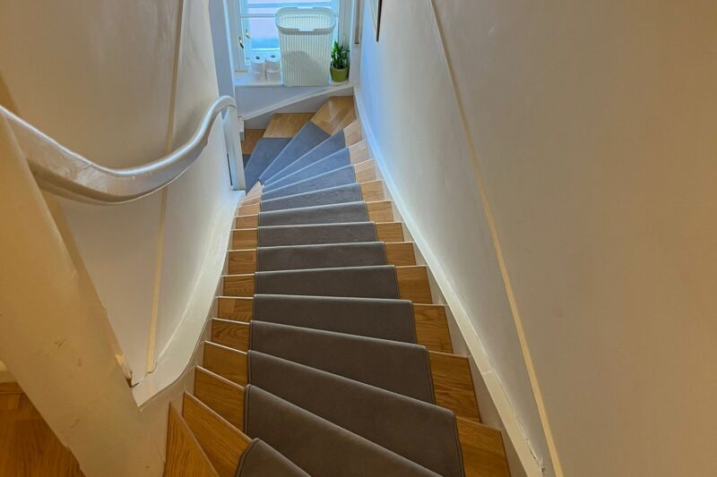 Beim Ausbau des Degussa-Stores in Berlin Mitte hatten wir mehrere Aufgaben. Eine davon war es das Vinyl auch auf der Treppe zu verlegen. Es handelte sich um eine Metalltreppe mit abgerundeten Stufen. Für die Verlegung von Vinyl nicht zu verwenden und wurde daher durch das schwarze Treppenkantenprofil von Auer vorbereitet.